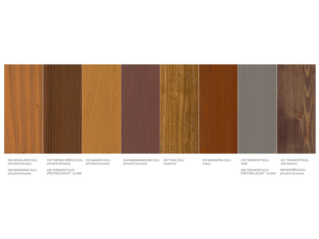 Terasové oleje vyhlazují povrch dřeva, který poté odpuzuje vodu a nečistoty.